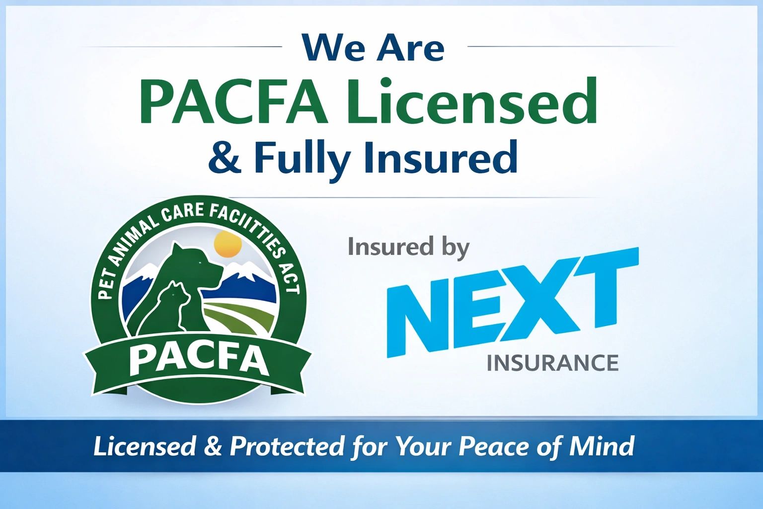 PACFA licensing and NEXT insurance set us apart from unregulated trainers, proving our commitment to professionalism, safety, and consistently high-quality dog training.